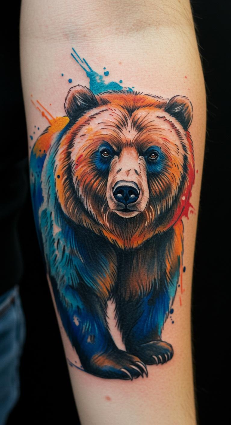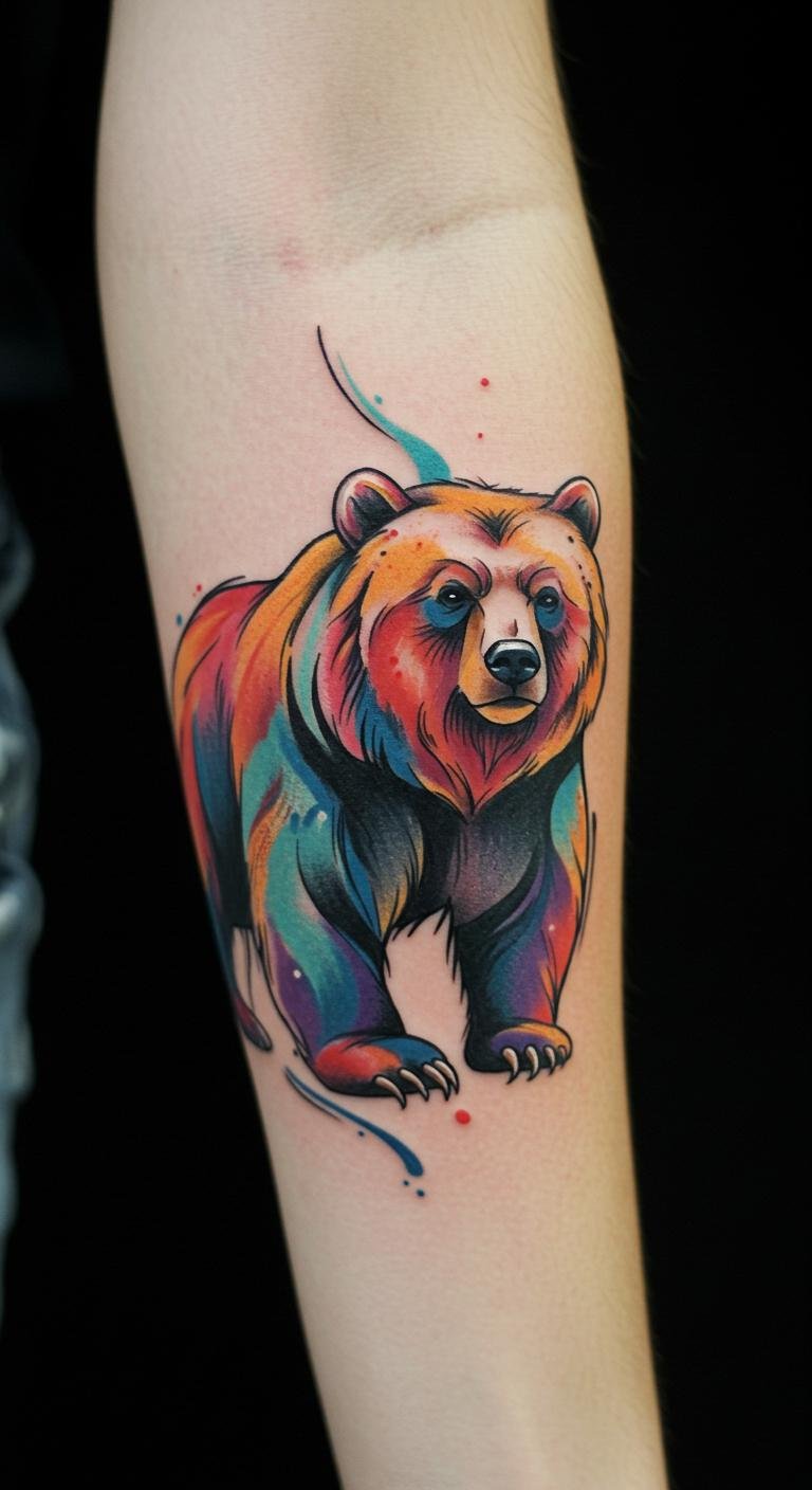 Vibrant Watercolor Bear Tattoo