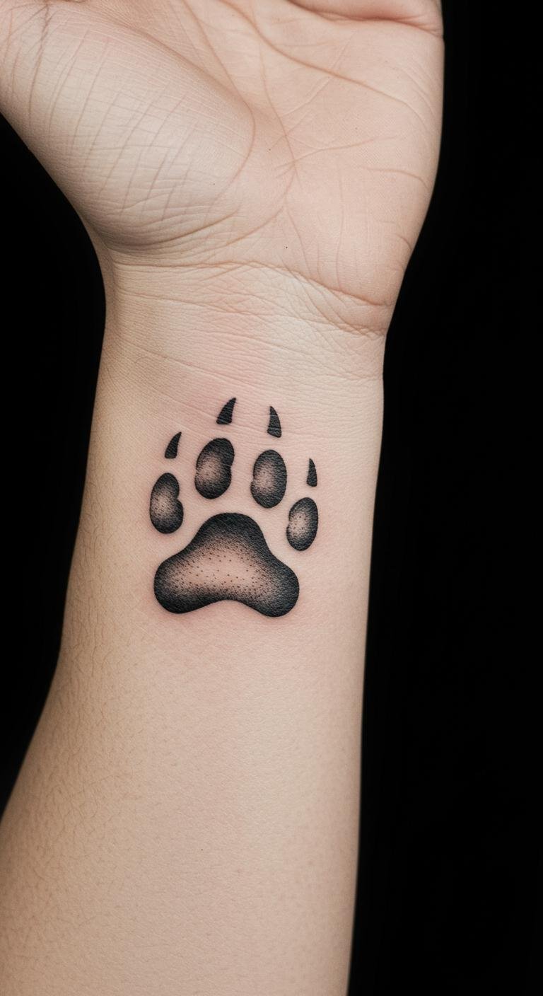 This bear paw print tattoo symbolizes strength, courage, and a deep connection to nature.