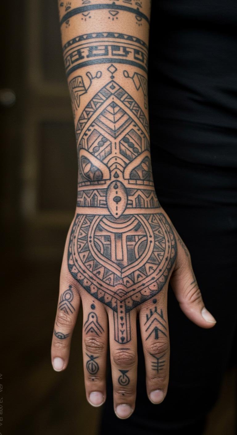 African Hand Tattoo With Symbolic Patterns