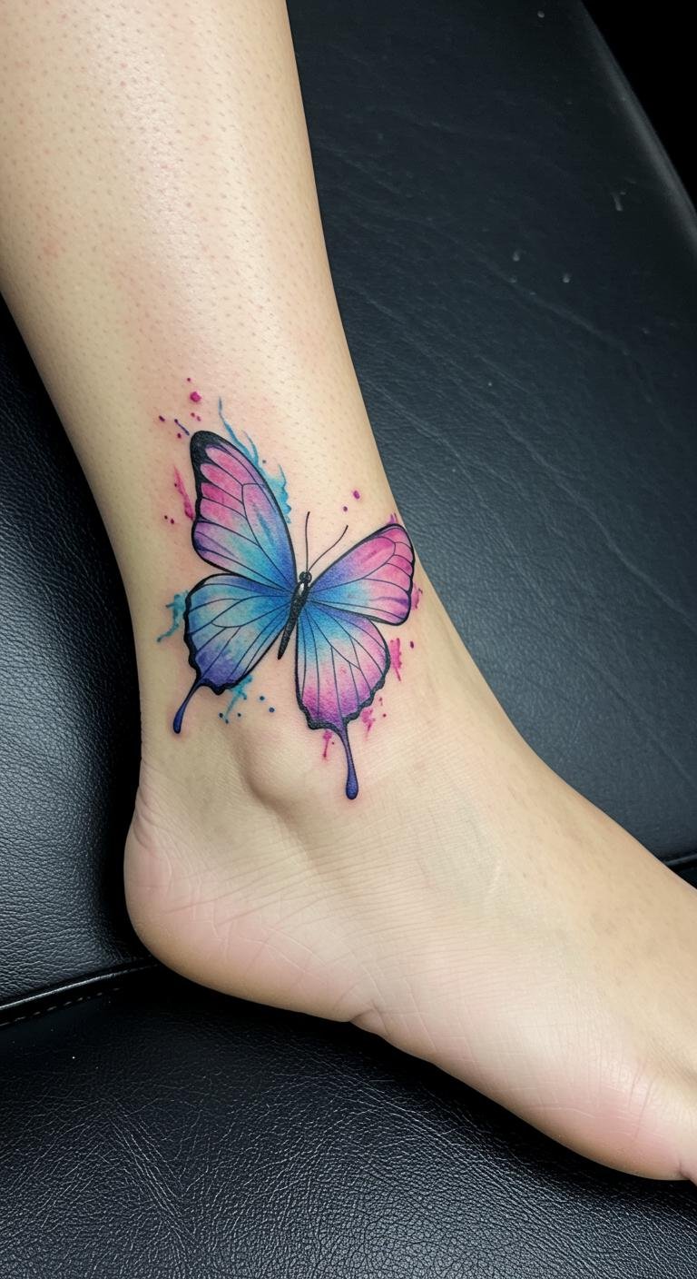 Watercolor Butterfly Ankle Tattoo