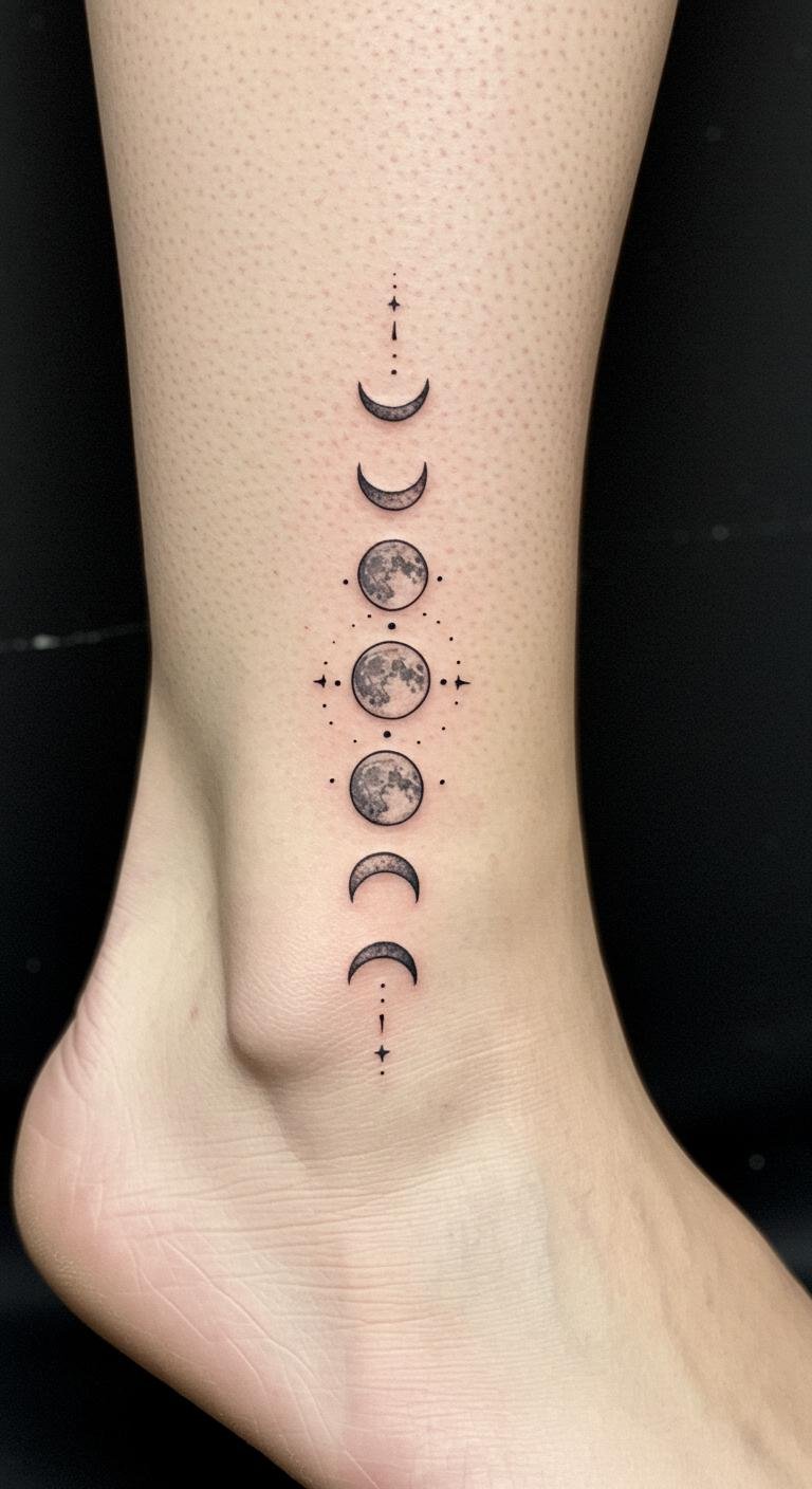 Celestial Moon Phases Ankle Tattoo