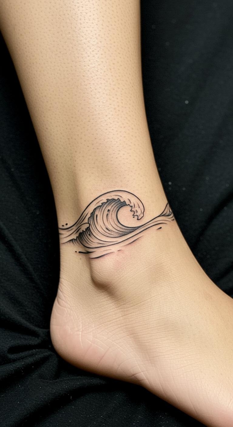 Ocean Wave Ankle Tattoo