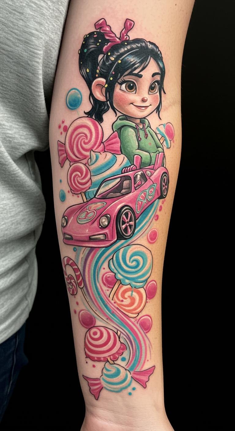 Vanellope Von Schweetz Candy Rush Sleeve Tattoo