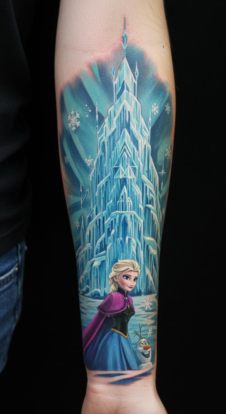 Elsa Ice Castle Sleeve Tattoo