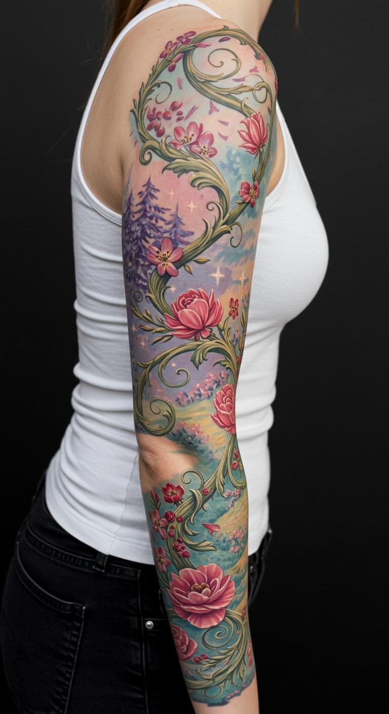 19+ Stunning Disney Tattoo Sleeves That Bring Storybook Magic to Life for Women Who Love Ink!