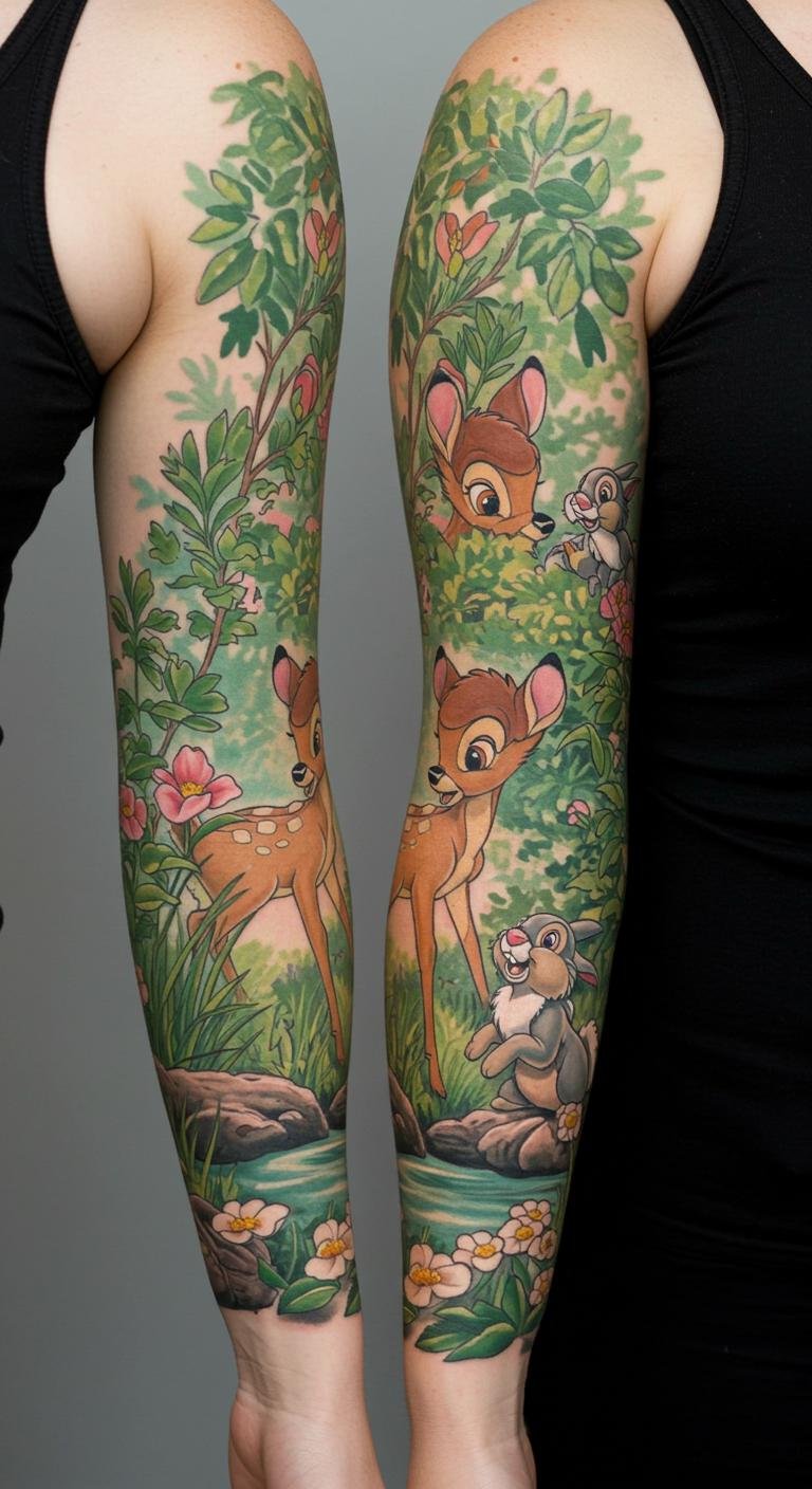 Bambi Woodland Friends Sleeve Tattoo
