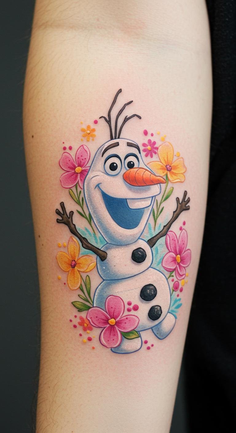 This tattoo symbolizes the joy and whimsy of childhood, reflecting a playful spirit that resonates with fans of Frozen.