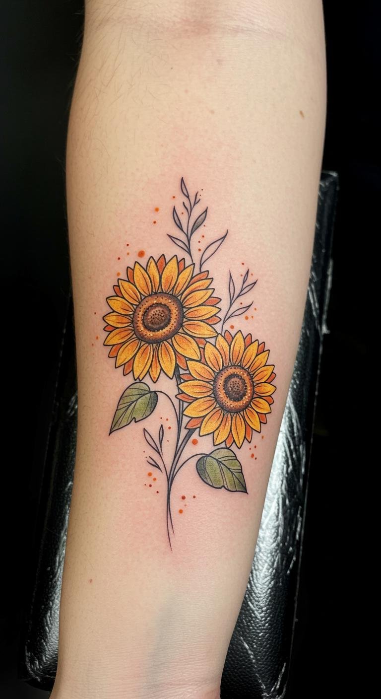Fine Line Twin Sunflowers Forearm Tattoo