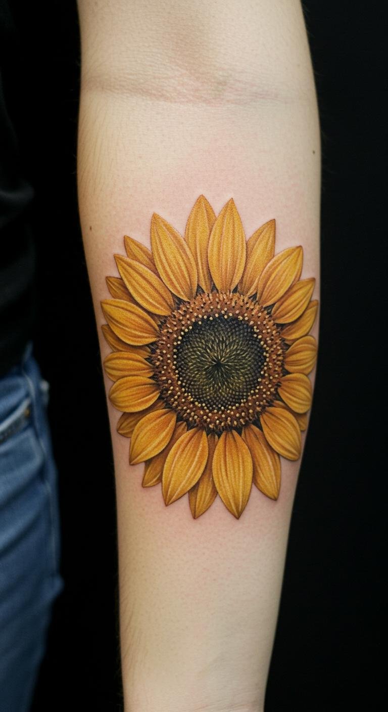 The placement on the forearm allows for easy visibility and serves as a daily reminder of the joy and brightness that sunflowers represent.