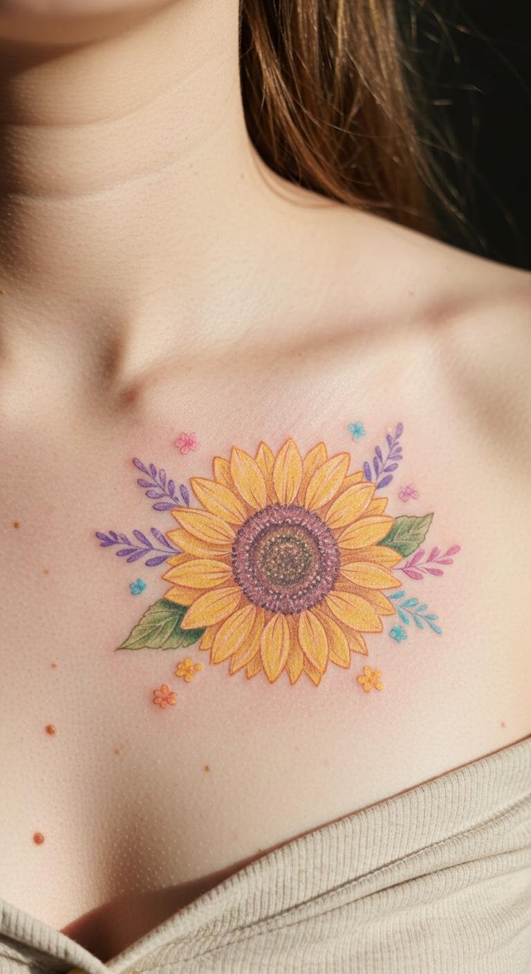 This tattoo symbolizes warmth, positivity, and the beauty of nature, making it a perfect expression of individuality and freedom.