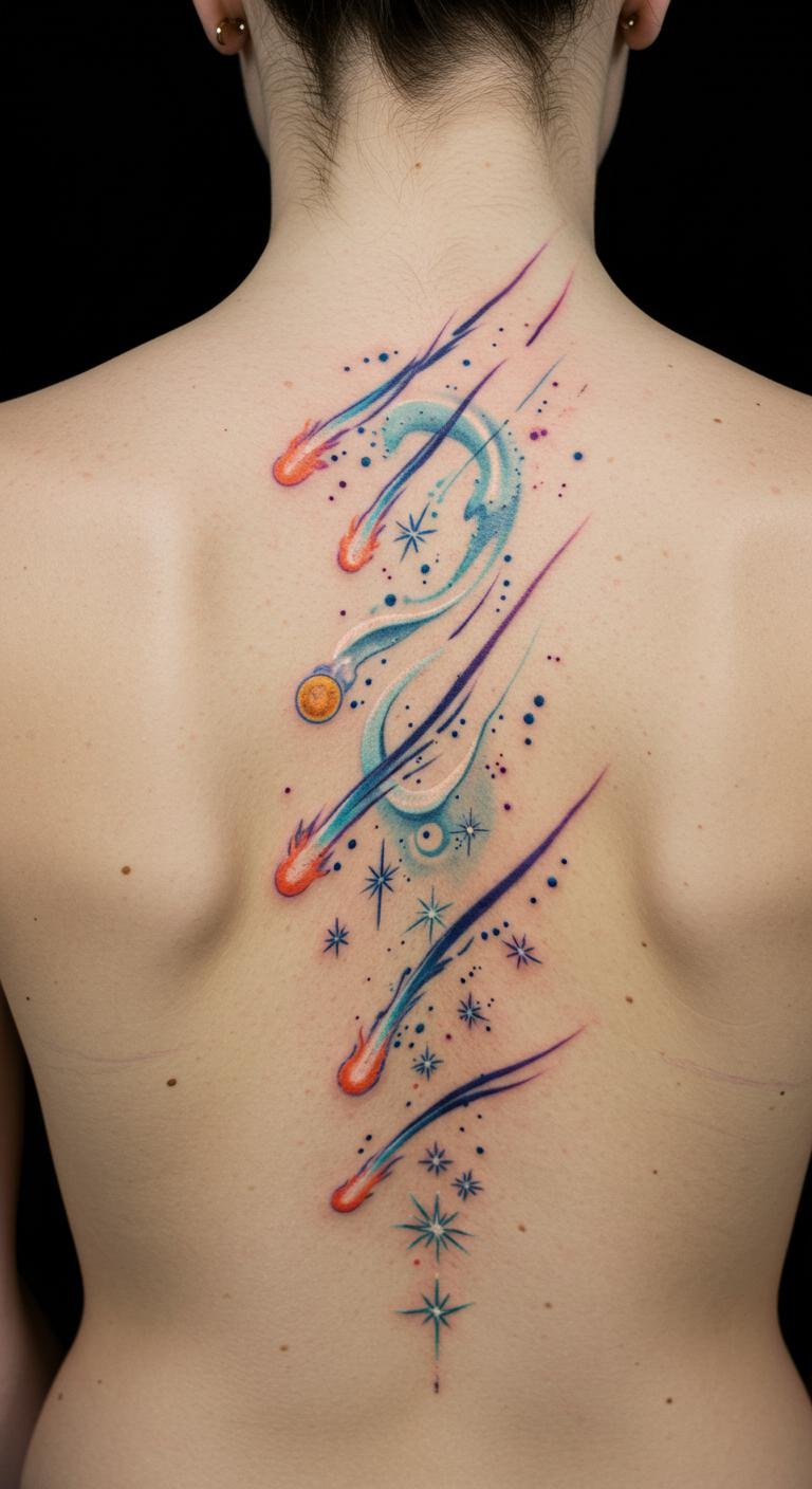 Luminous Comet Spine Tattoo