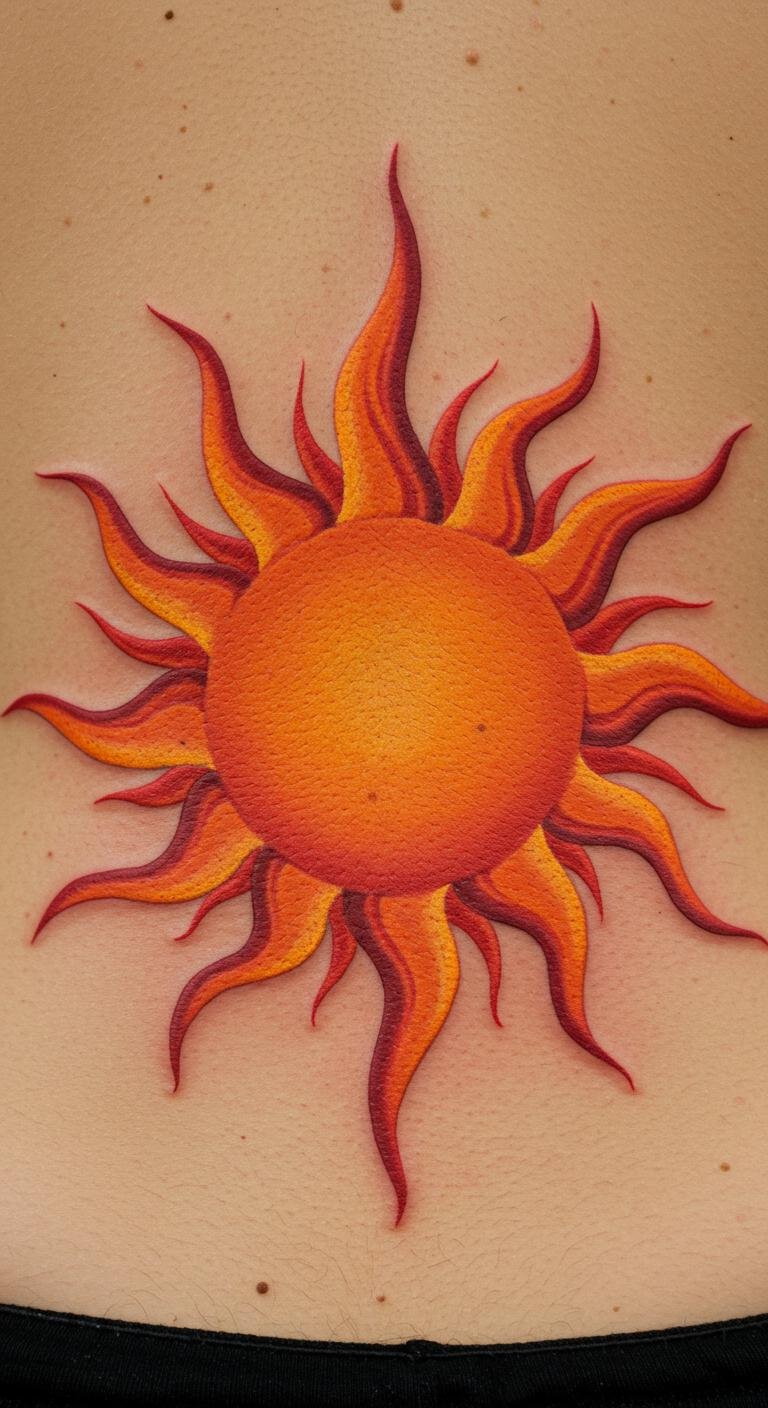 This striking tattoo symbolizes warmth, freedom, and the power of inner light.
