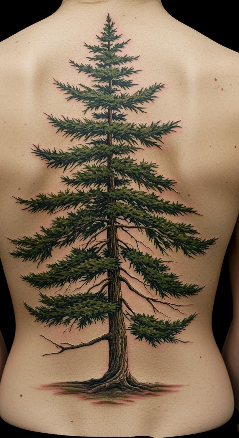 The pine tree spine tattoo embodies strength and resilience, making it a powerful symbol for those who wear it.