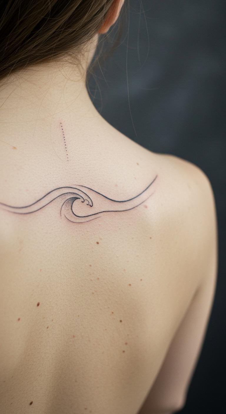 This tattoo symbolizes the connection between the individual and the ocean’s vastness, embodying freedom and adventure through its flowing lines.