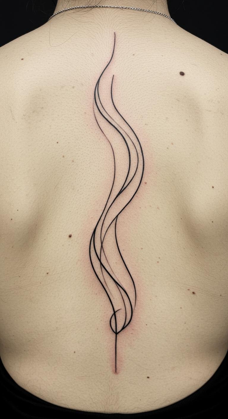 The placement along the spine allows for a flowing connection to the body, harmonizing with movement and grace, while the subtle ink enhances rather than overshadows the natural beauty of the skin.