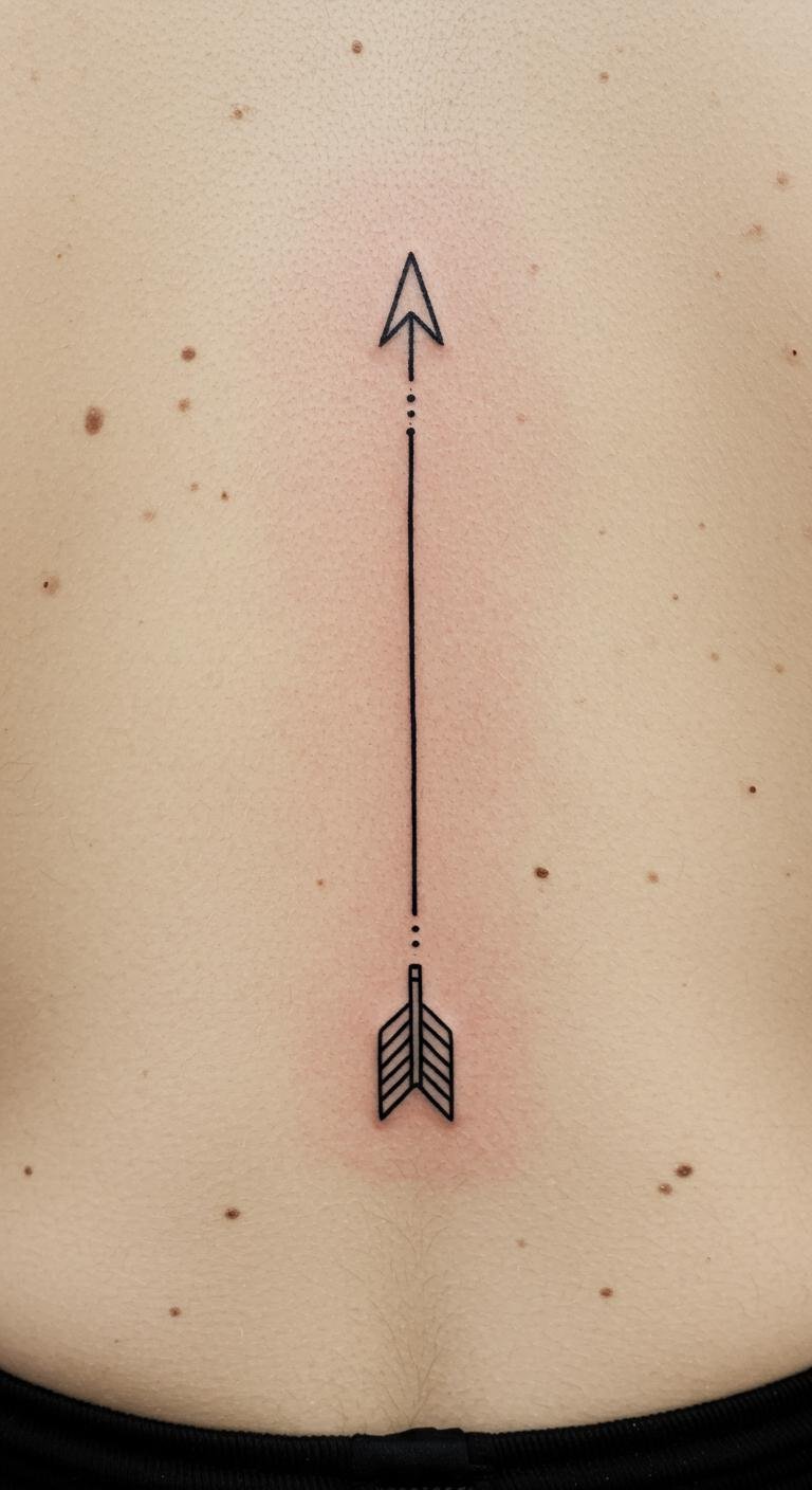 The Simple Arrow Spine Tattoo represents a journey toward personal goals, with each arrow signifying the pursuit of dreams and the strength to overcome obstacles.
