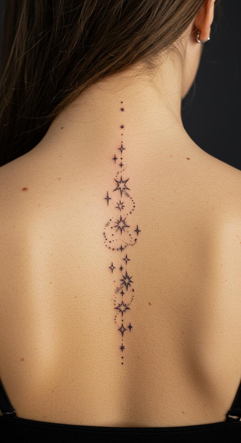 This spine tattoo symbolizes a connection to dreams and aspirations, serving as a reminder of the vast possibilities life offers.