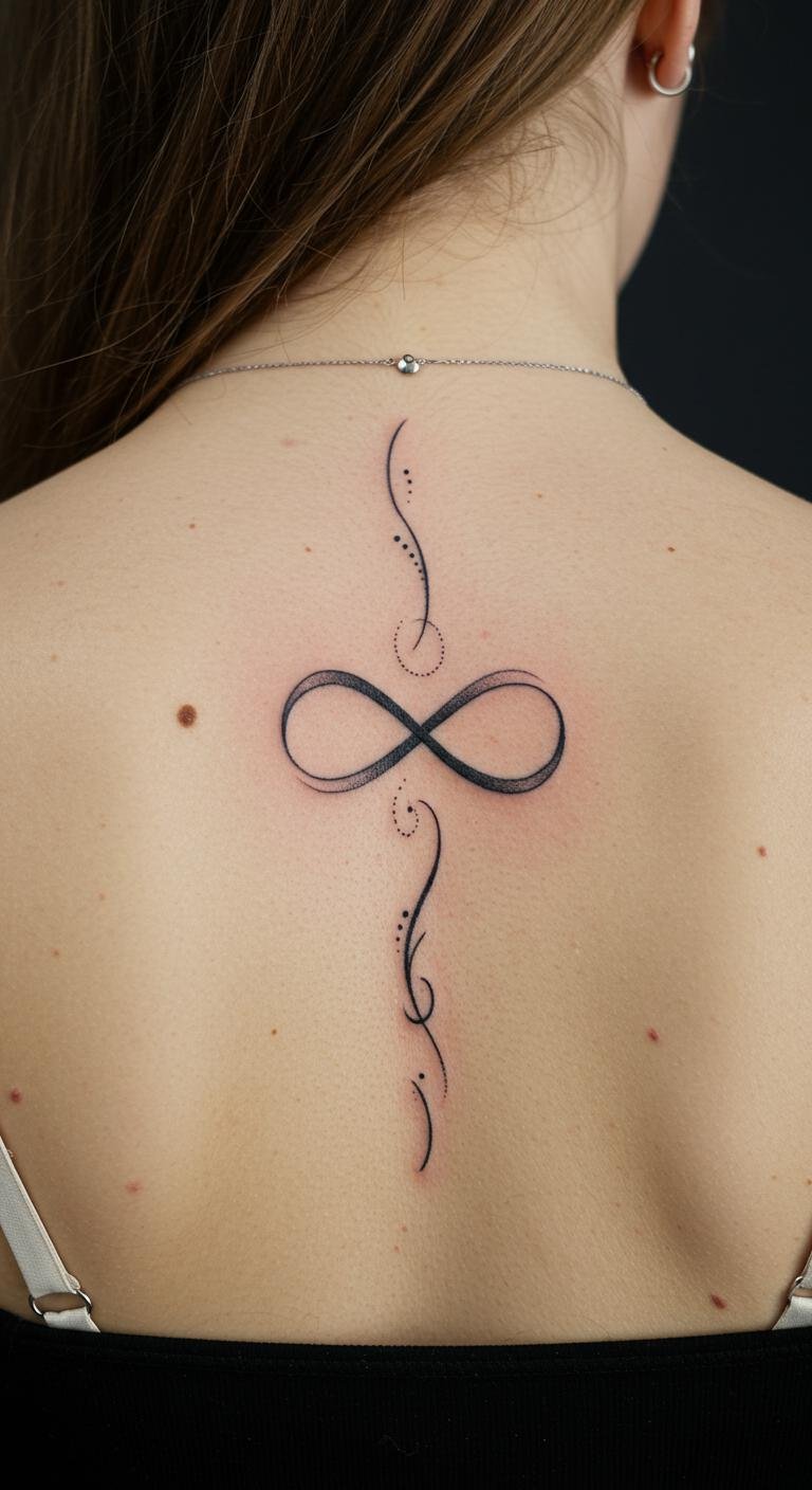 With its graceful curves, this tattoo captures profound infinity symbol meanings, representing your boundless spirit. Placed on the spine, it serves as a beautiful reminder of the freedom that life offers you, signifying strength and continuity in your journey.