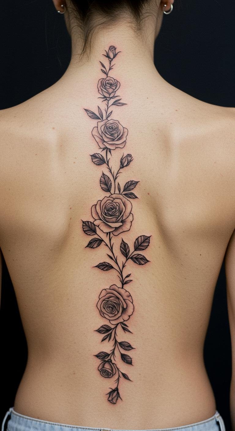 Positioned along the spine, this tattoo not only highlights the natural curves of the body but also serves as a personal reminder of one’s journey through life.