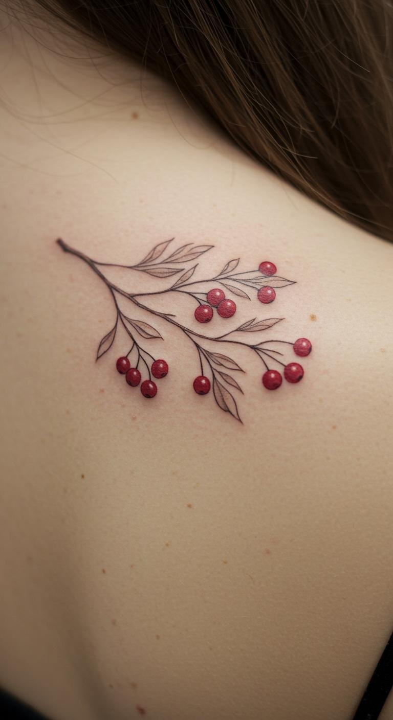 The rich red berries serve as a reminder of vitality and celebration, making this design not only a style statement but also a personal emblem of positivity and growth.
