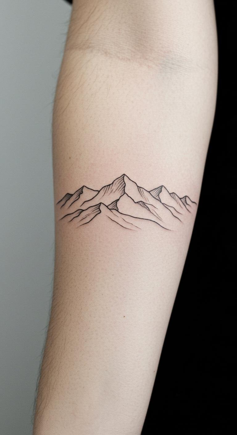 This tattoo symbolizes a deep connection to nature, representing strength and freedom through its mountain imagery.