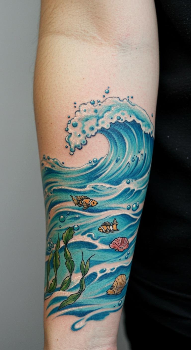 This tattoo symbolizes the connection to the ocean, reflecting fluidity and serenity in its design.