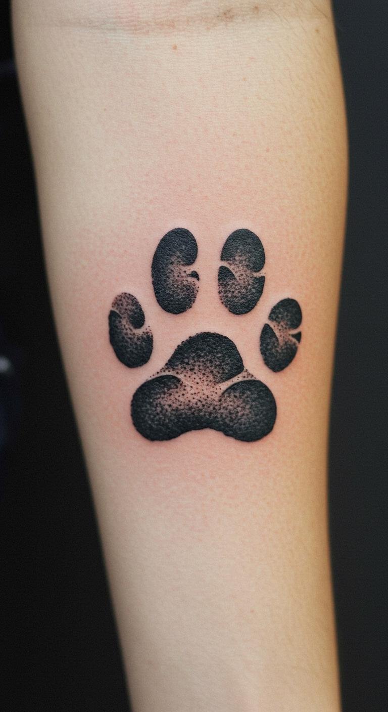 The bold black ink signifies strength and passion, while the paw print represents the unique bond between humans and their pets.