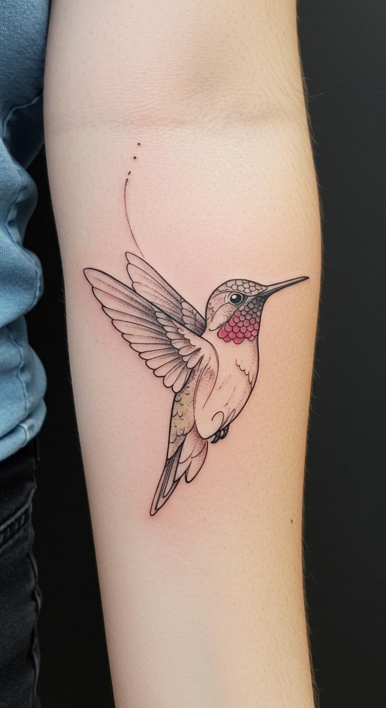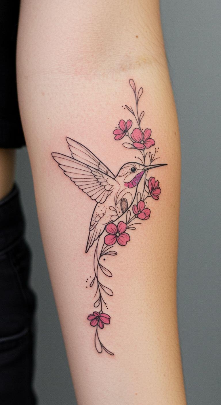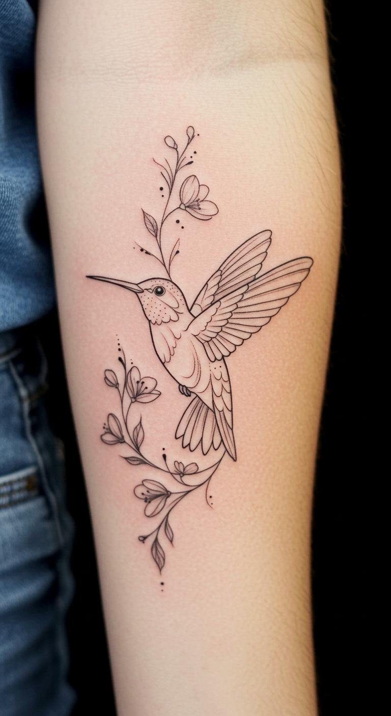 The hummingbird symbolizes joy and love, resonating deeply with those who appreciate beauty and meaning in their ink.