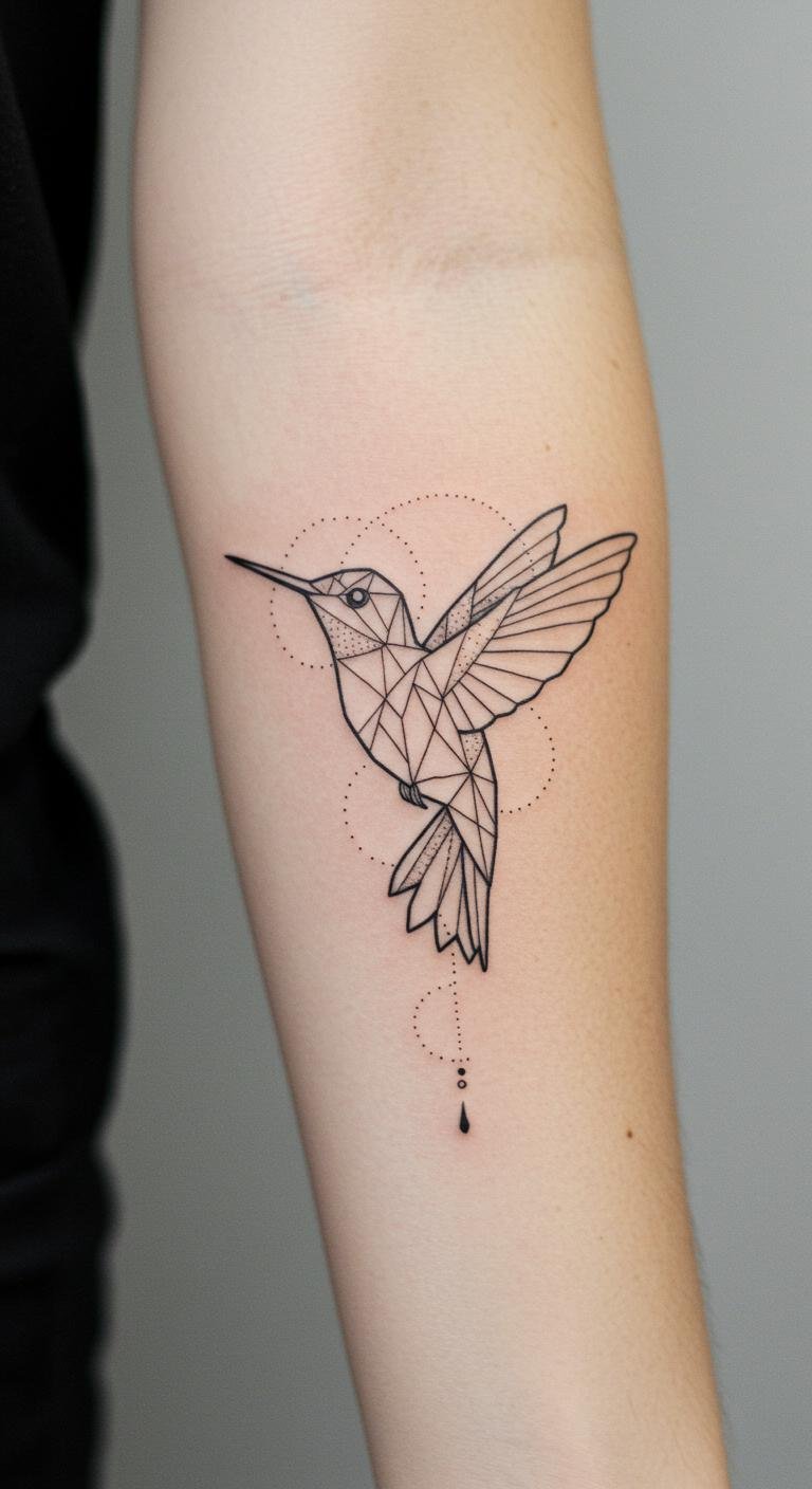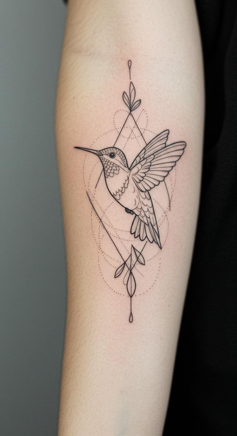 Fine Line Hummingbird Geometric Tattoo