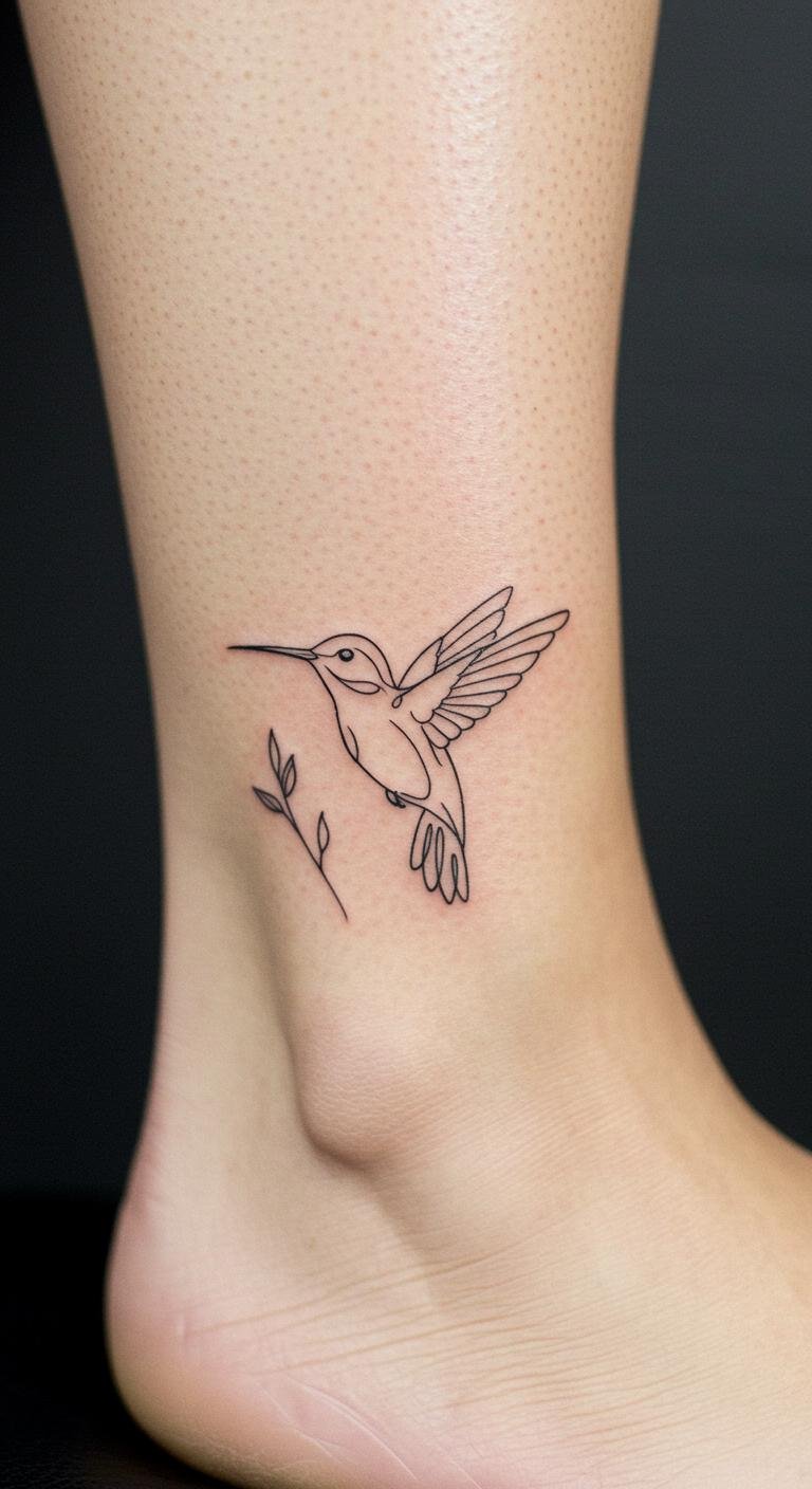 Fine Line Minimalist Hummingbird Ankle Tattoo