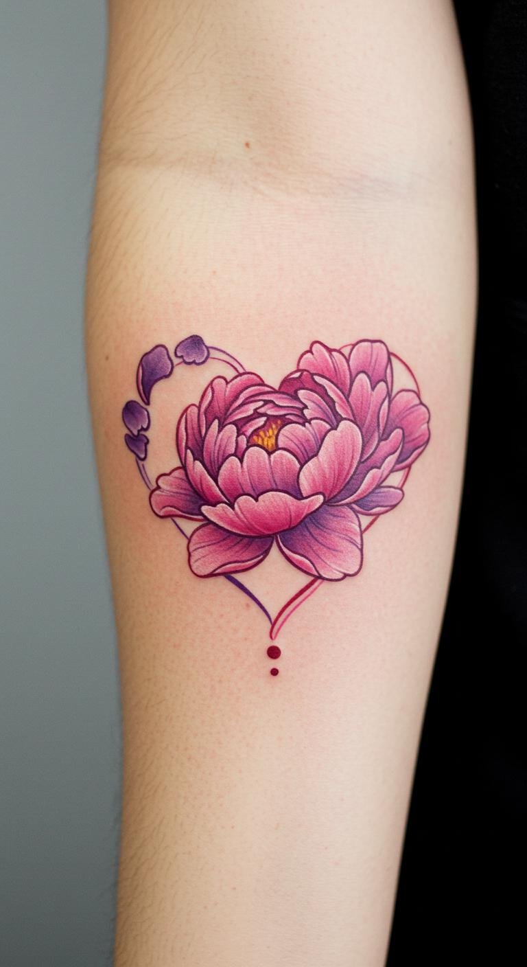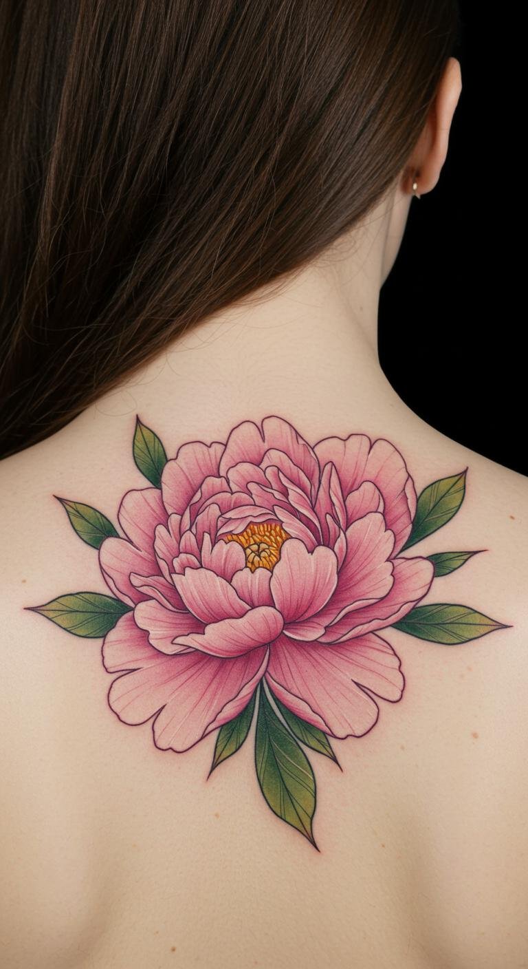 The peony symbolizes love and resilience, making this tattoo not just a piece of art but a representation of personal strength and emotional depth.