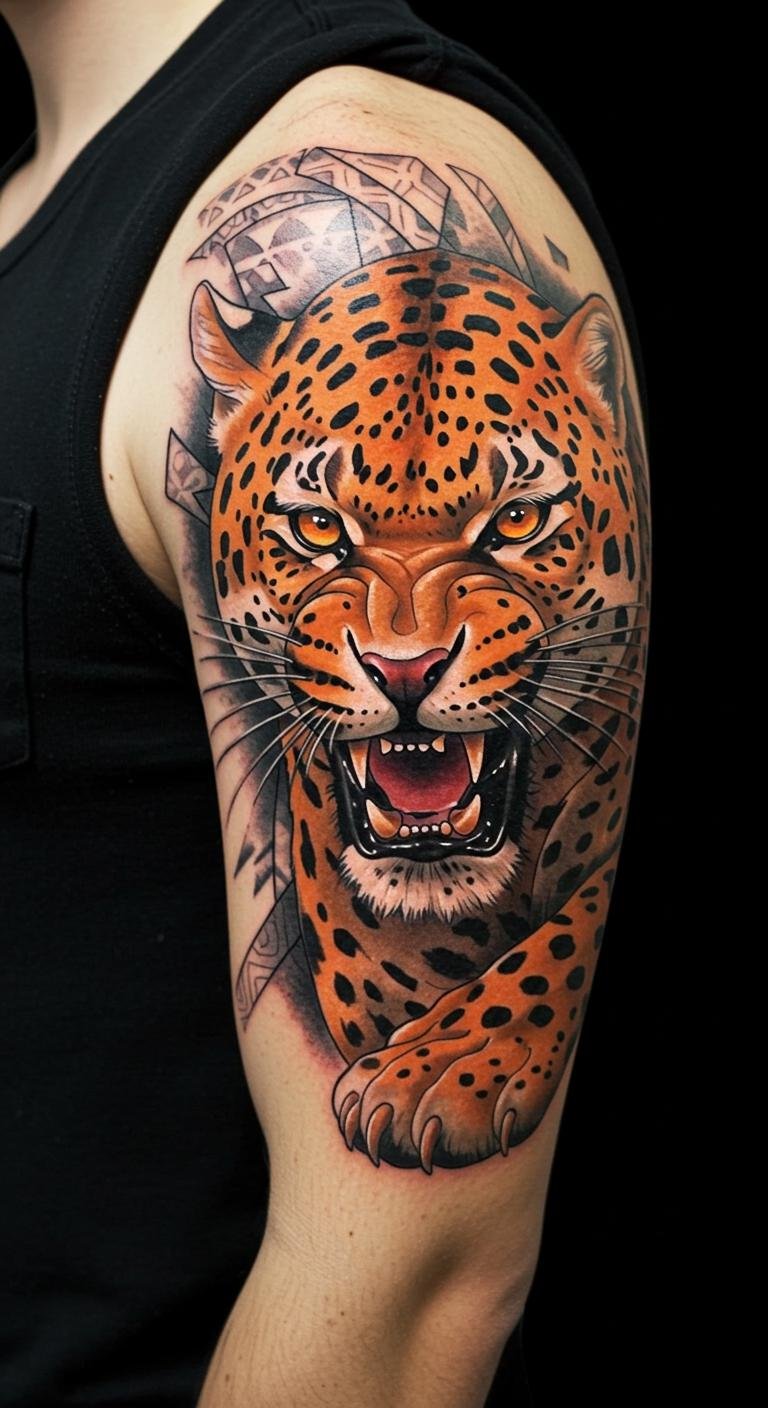 This powerful tattoo symbolizes raw strength and the untamed spirit of the jungle.