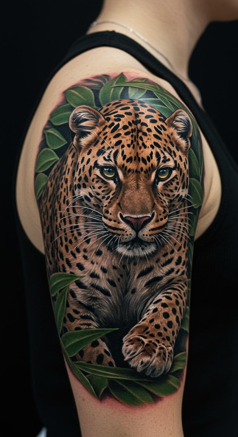 This tattoo embodies the powerful symbolism of the leopard, representing strength, independence, and the wild spirit within.
