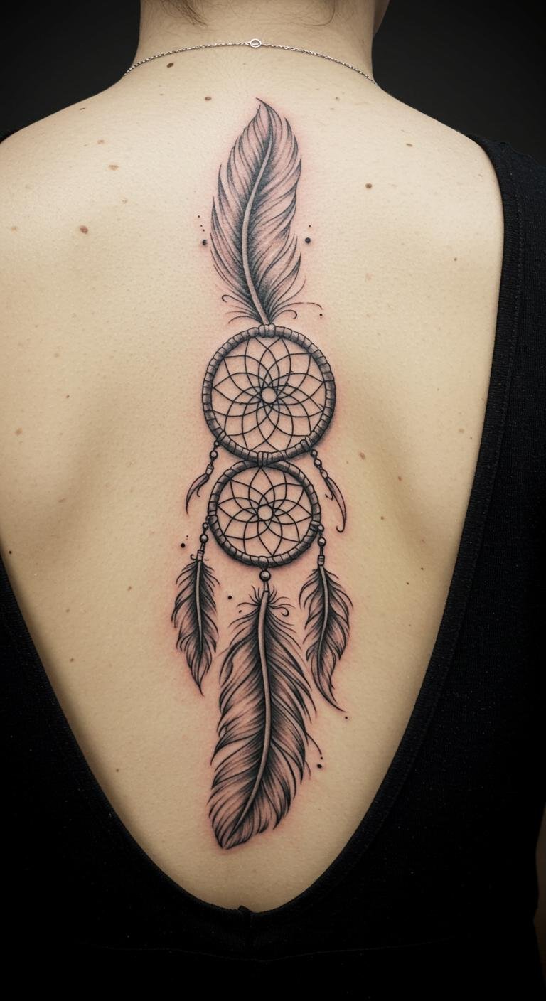 The design’s placement along the spine accentuates the body’s natural curve, creating a sense of movement and grace. It invites positivity and freedom, making it a meaningful expression of one’s inner spirit and personal journey.
