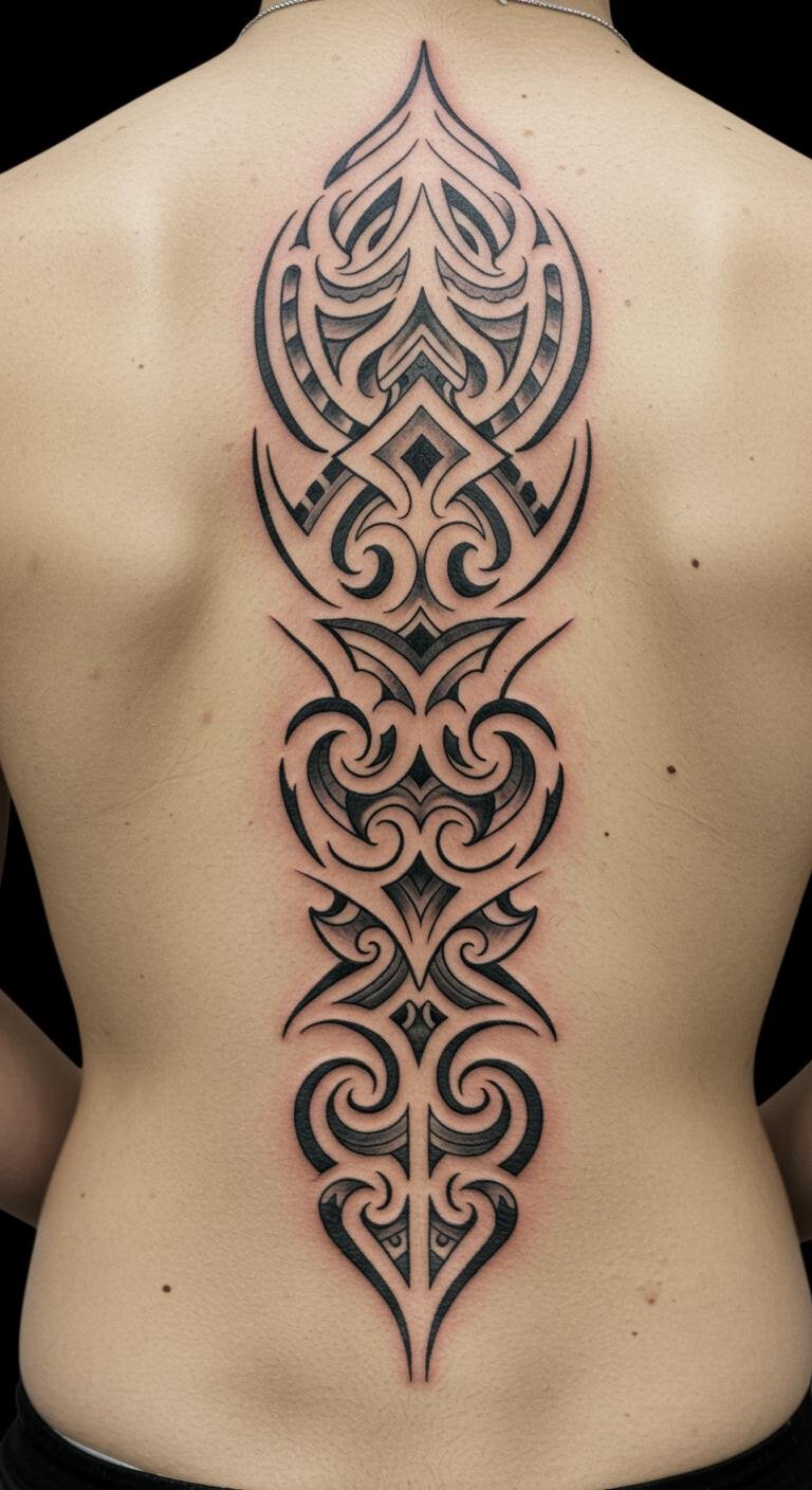 The Tribal Design Spine Tattoo serves as a powerful emblem of heritage and individuality, with each pattern narrating a unique story that connects the wearer to their roots.