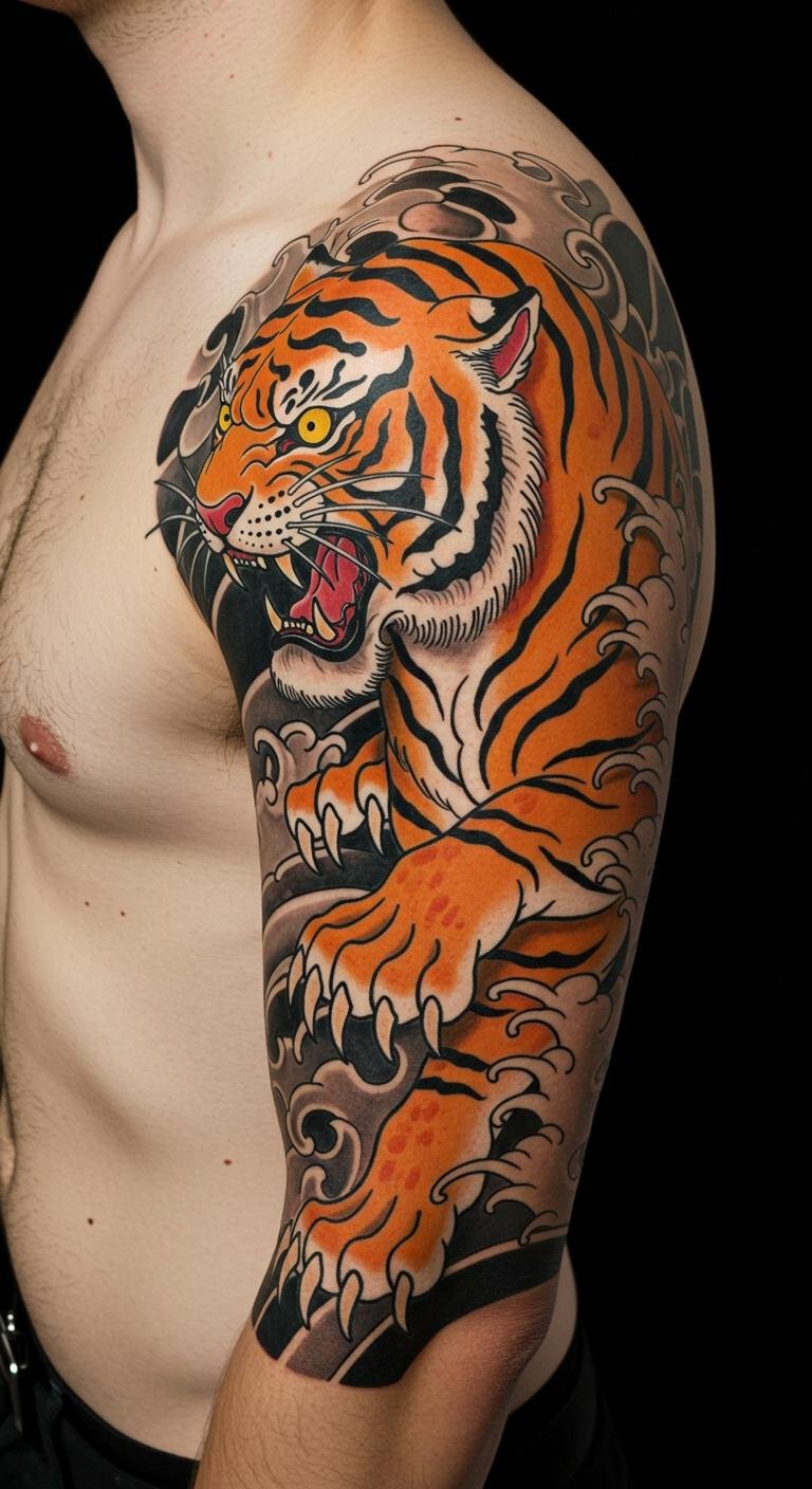 This design symbolizes power and protection, embodying the spirit of the tiger in Japanese culture.