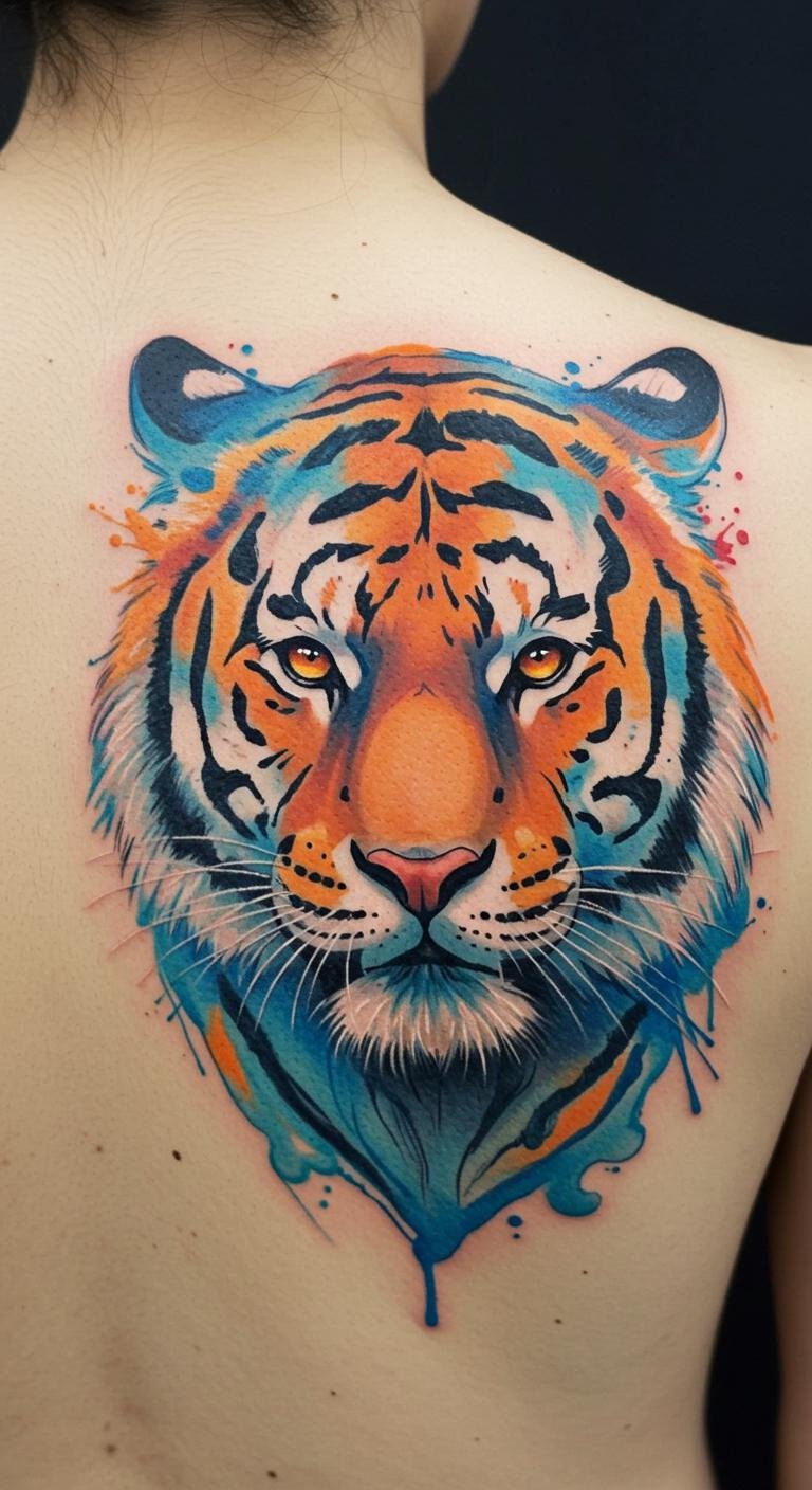 Watercolor Tiger Back Tattoo
