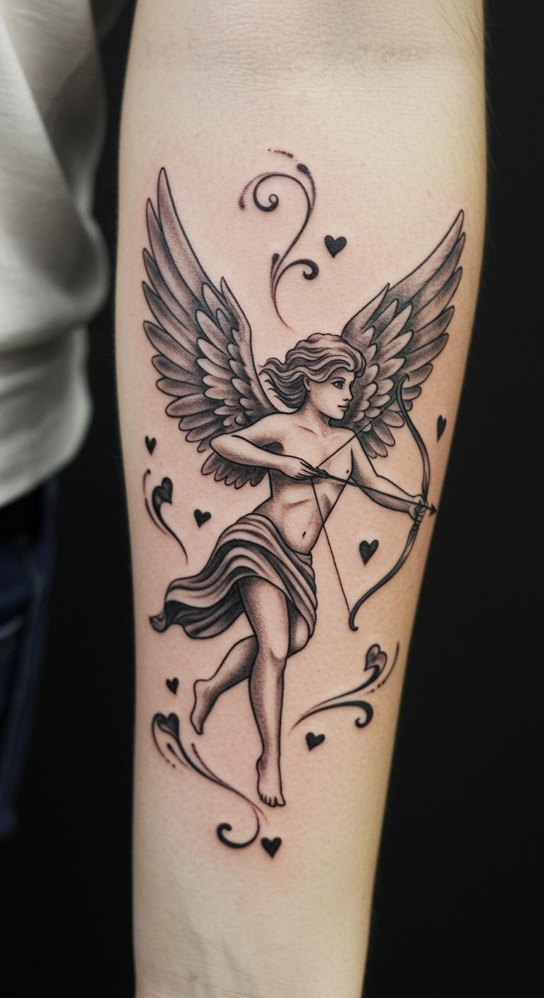 This tattoo design of Eros embodies the essence of love, passion, and romantic connection, making it a perfect choice for those who celebrate these emotions.