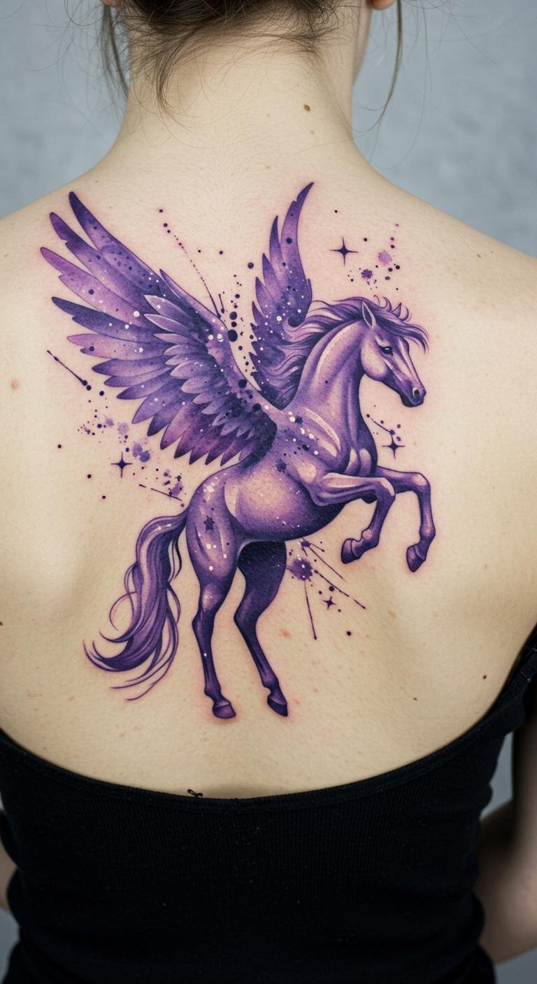 Pegasus Watercolor Back Tattoo