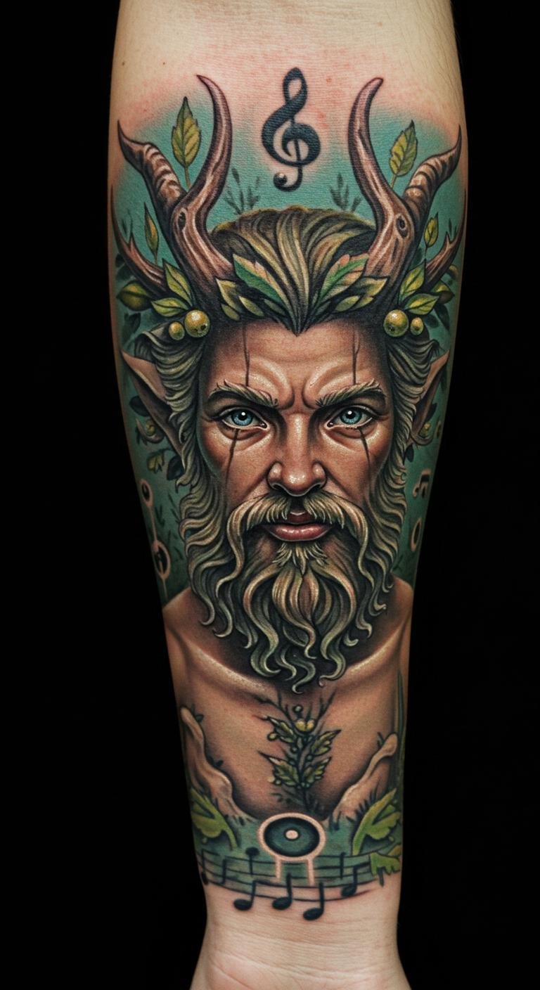 This tattoo embodies the spirit of nature, with Pan representing the wild heart within us all.