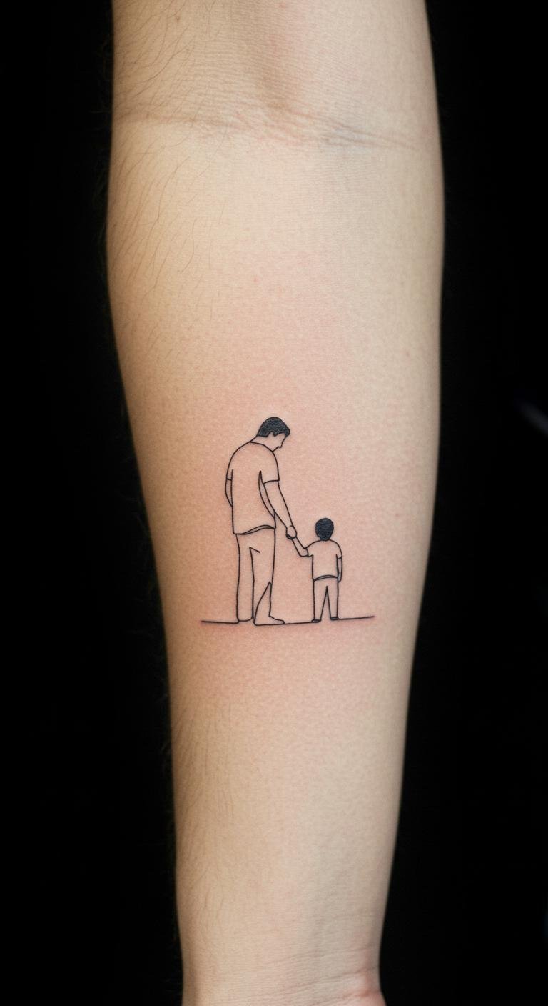 This tattoo design symbolizes the strong bond and support shared between a father and son, representing their unity and individuality. Placed on the forearm, it allows for visibility and easy expression of their connection in everyday life. The minimalist approach adds a modern touch, celebrating the freedom and creativity in their relationship while serving as a constant reminder of the powerful moments they’ve shared together.