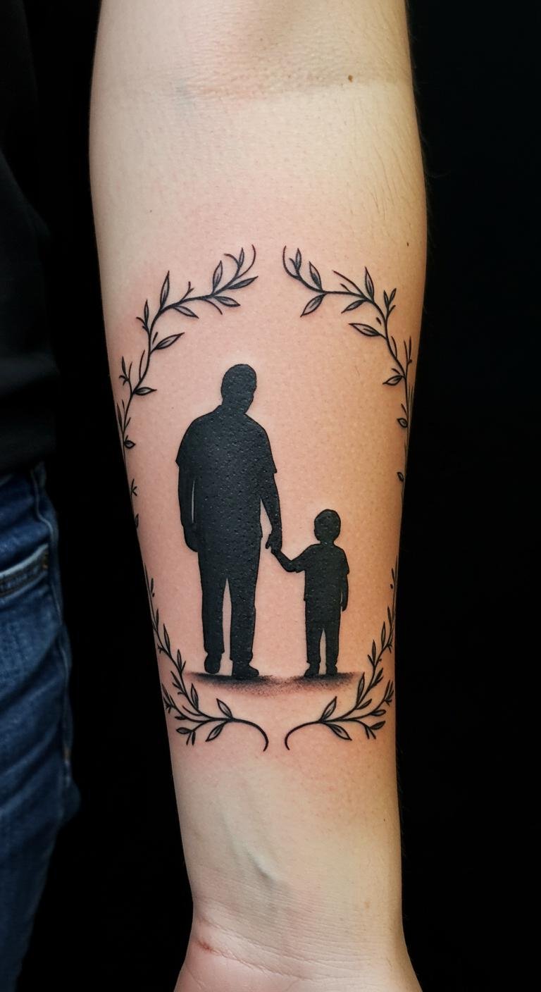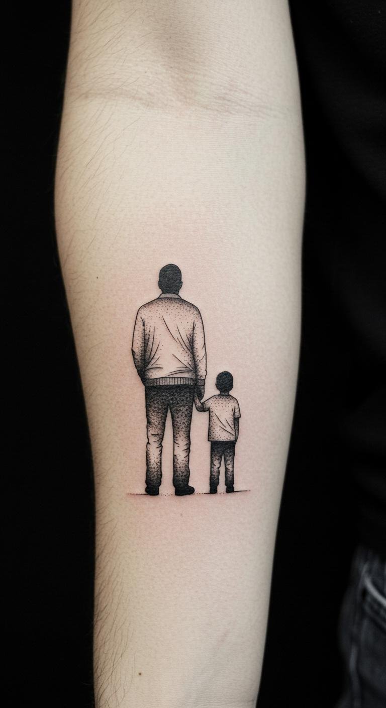 This tattoo symbolizes the enduring bond between a father and son, representing love, guidance, and shared experiences.
