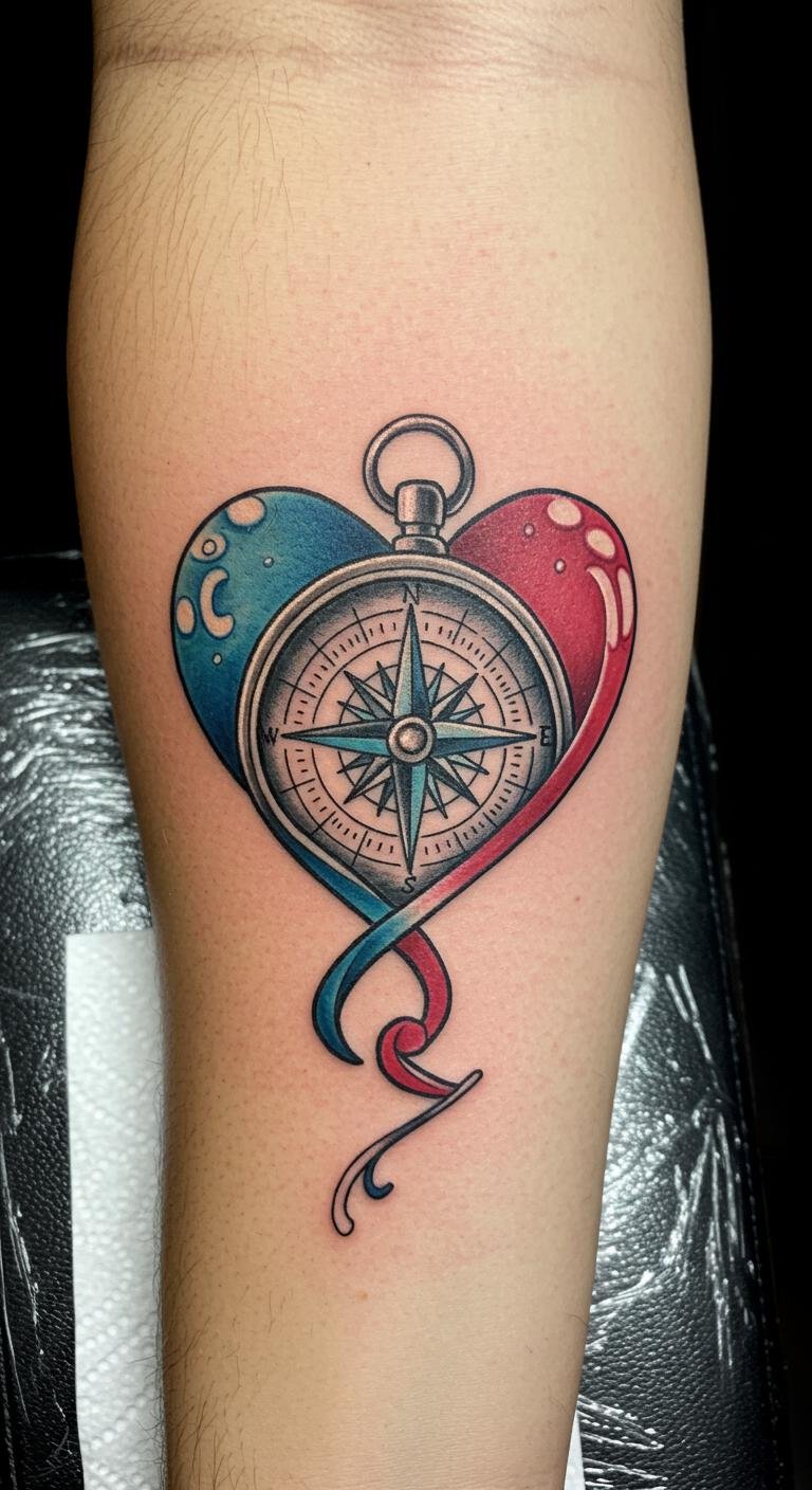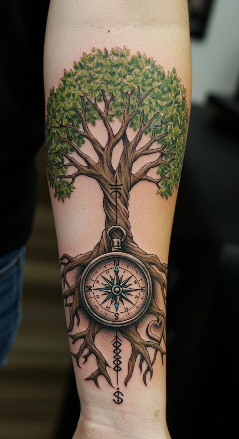 This tattoo design symbolizes the guiding nature of a father’s love, with the compass representing direction and purpose in life.