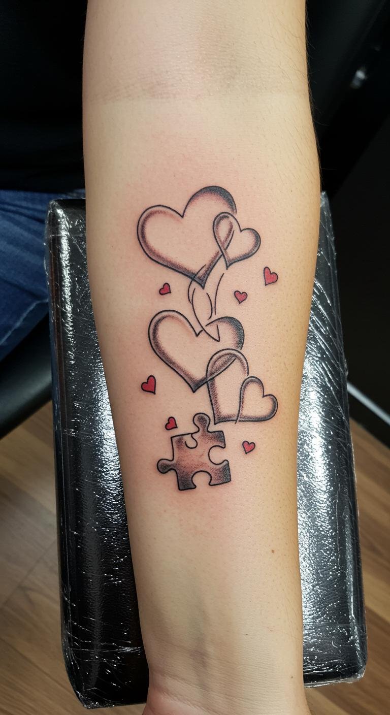 This tattoo symbolizes the deep, unbreakable bond between a father and son, with each puzzle piece reflecting their unique connection.