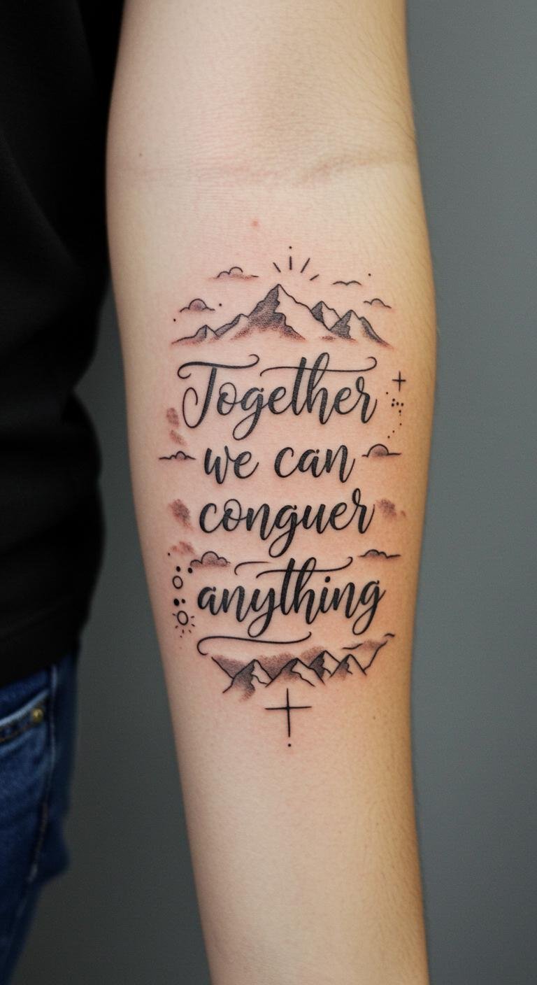 Positioned on the forearm, it serves as a constant reminder of their shared journeys and the emotional depth of their relationship.