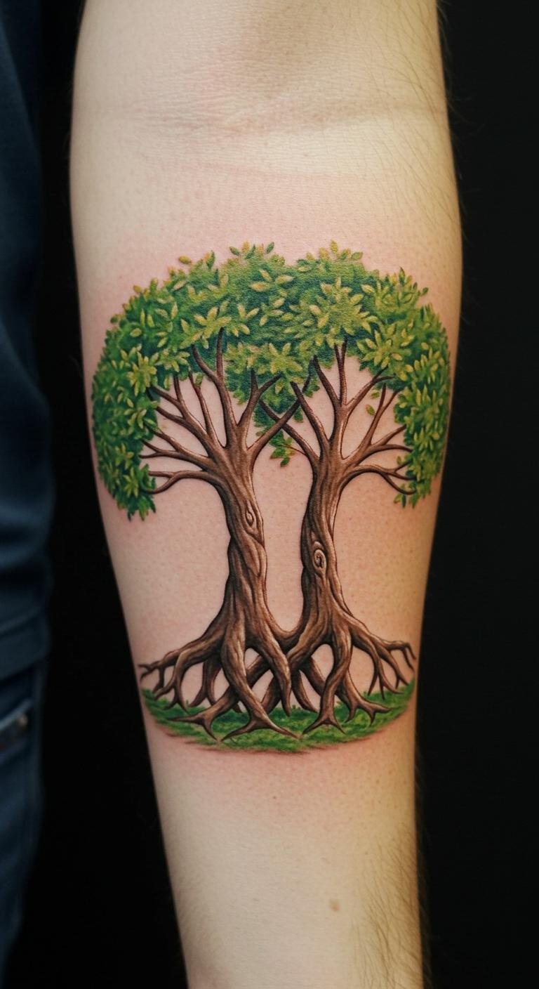 This tattoo design embodies the deep bond between loved ones, with the intertwined vines representing the strength of their relationship as they grow together.