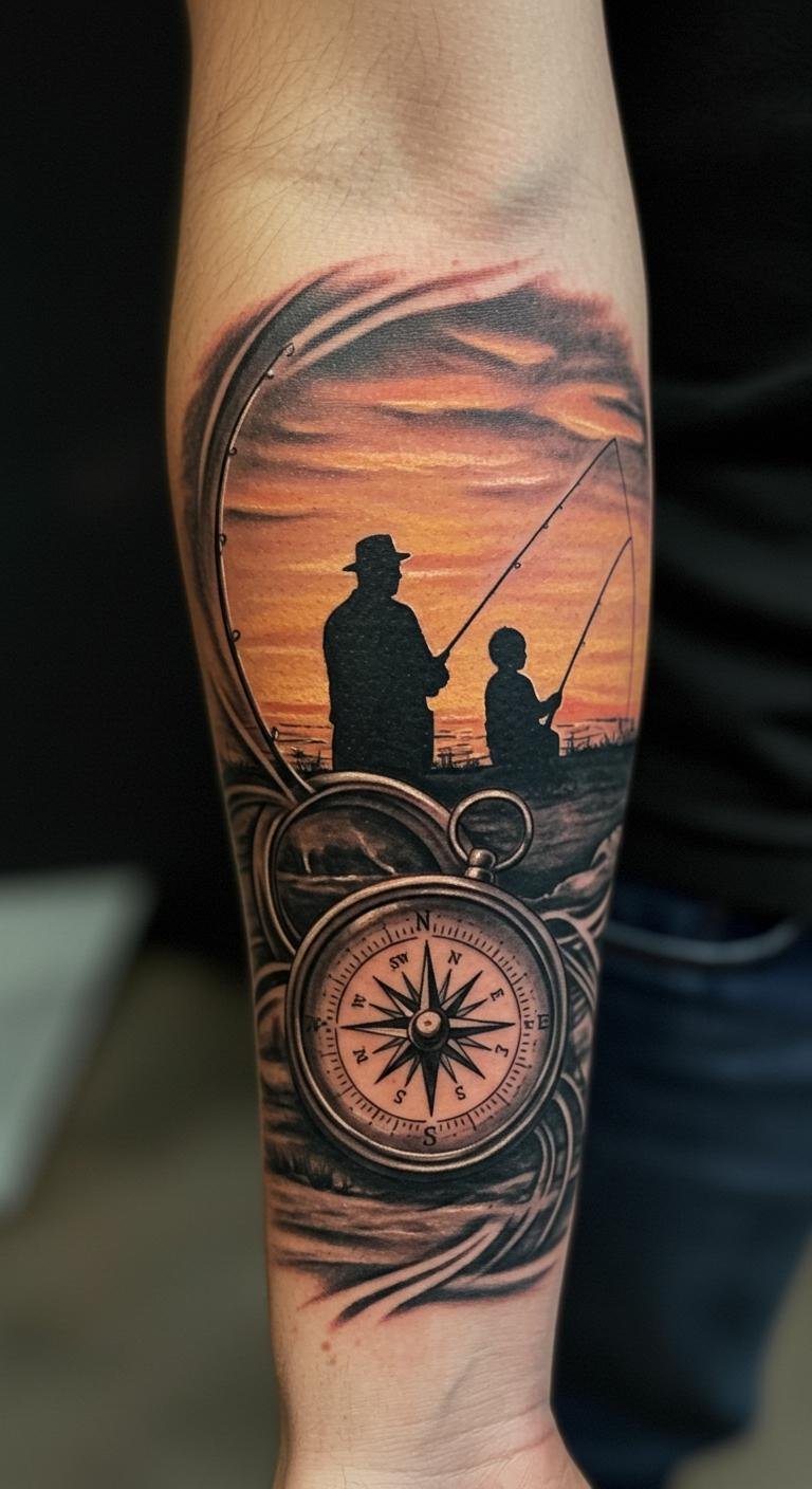 This tattoo captures the essence of father-son adventures in the great outdoors.