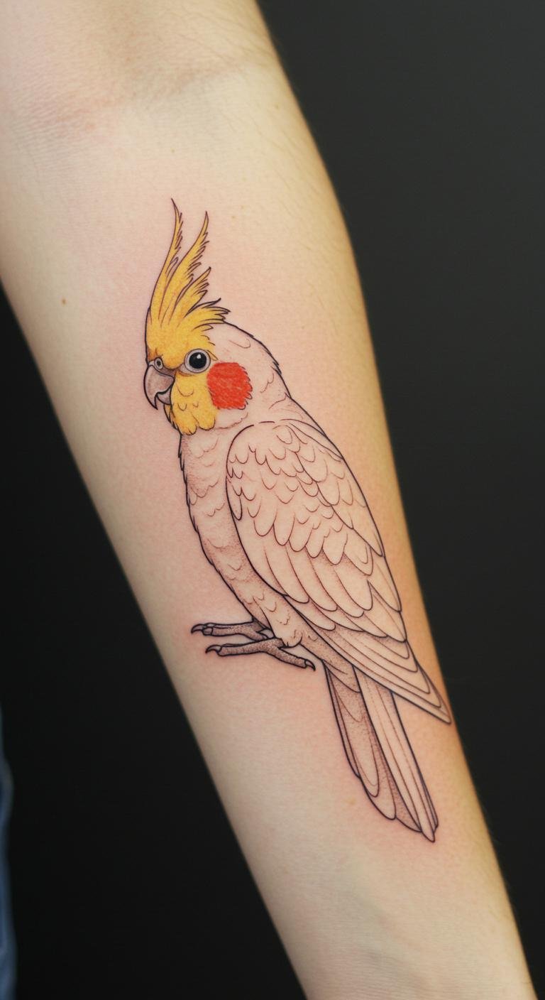 This tattoo, located on the forearm, symbolizes freedom and joy, mirroring the vibrant spirit of cockatoos.