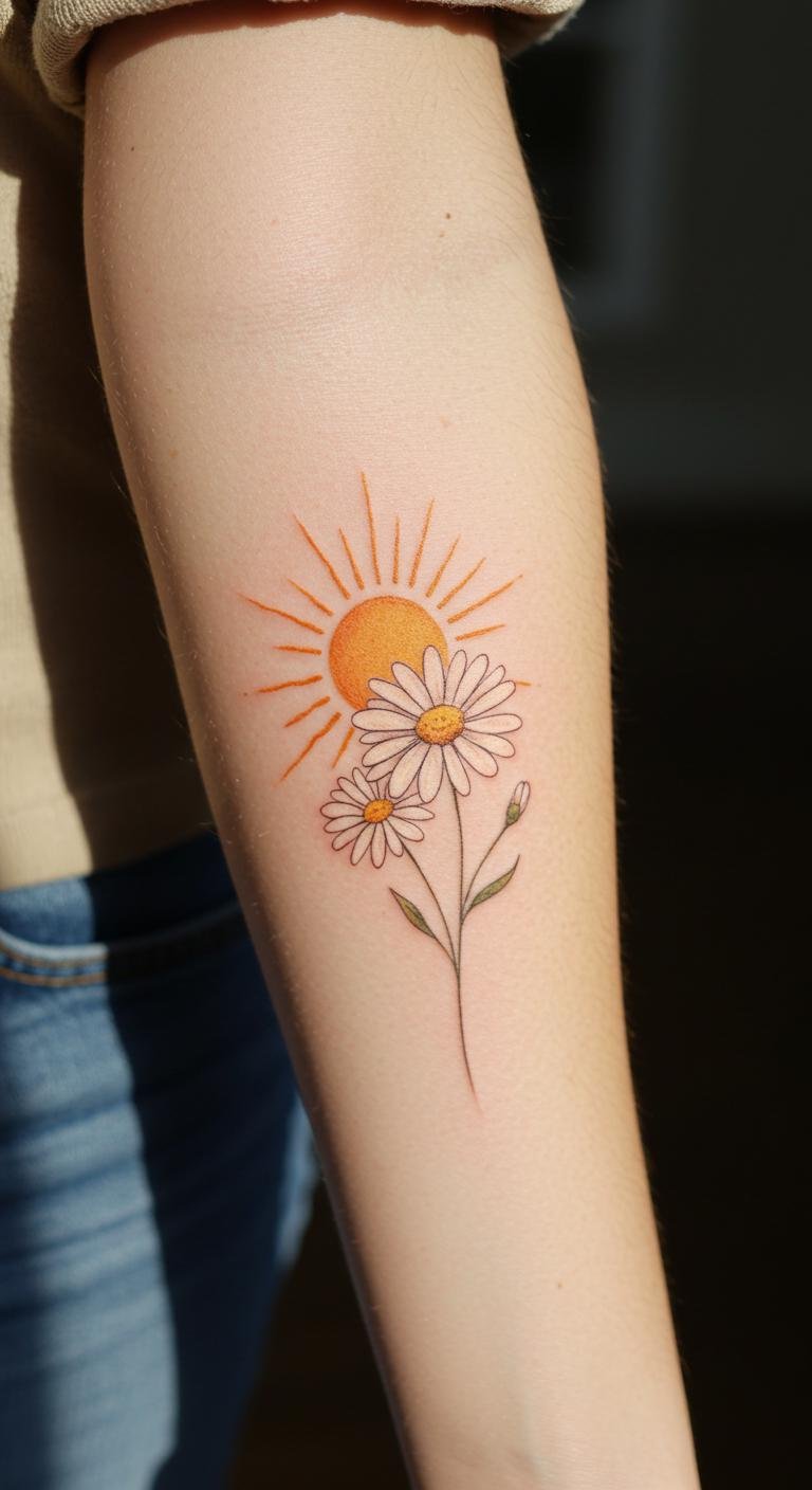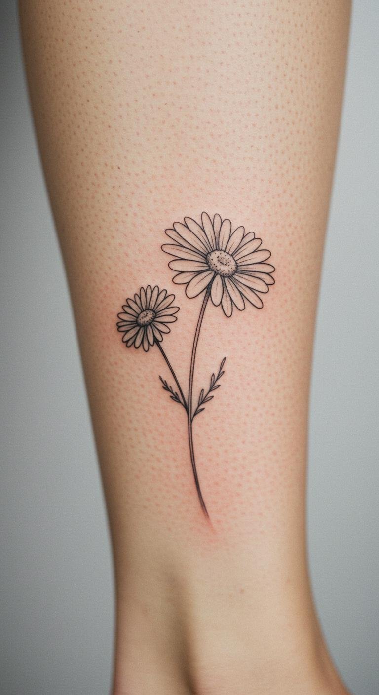 This tattoo captures the essence of nature’s beauty, symbolizing purity and new beginnings through the delicate daisy design.