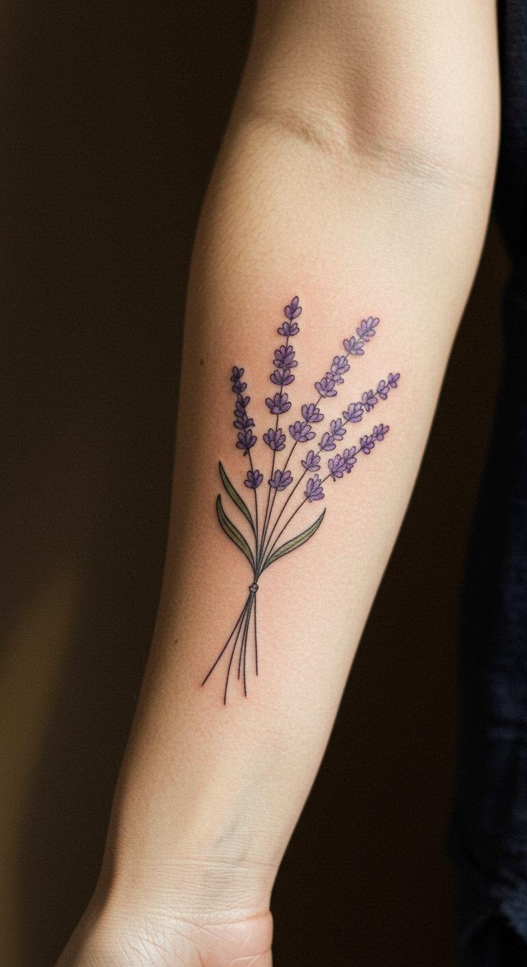 Embodying tranquility and grace, this tattoo captures the delicate beauty of lavender, symbolizing serenity and peace.
